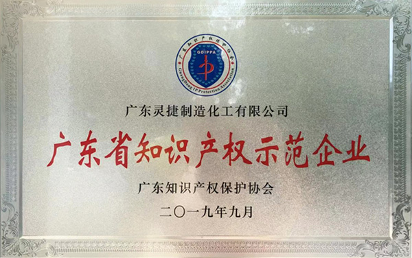 近日,廣東省知識(shí)產(chǎn)權(quán)保護(hù)協(xié)會(huì)公布了2019年度“廣東省知識(shí)產(chǎn)權(quán)示范企業(yè)”名單,靈捷制造化工成功入選,這是對(duì)公司知識(shí)產(chǎn)權(quán)管理工作的充分肯定。
